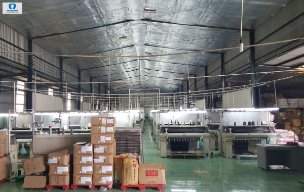 - Hệ thống thiết bị hiện đại nhập được khẩu từ nước ngoài: Chúng tôi luôn đầu tư vào những công nghệ - khoa học hiện đại nhằm nâng cao năng suất và chất lượng sản phẩm. Hiện nay, hệ thống hiện đại của chúng tôi đạt năng suất bình quân ngày đêm từ 40.000 đến 70.000 sản phẩm cổ quy đổi có khổ rộng tối đa đến 120cm và được kiểm tra chất lượng 100%, đóng gói theo yêu cầu khách hàng. Chúng tôi luôn cam kết đảm bảo đúng tiến độ theo kế hoạch sản xuất của quý khách hàng.